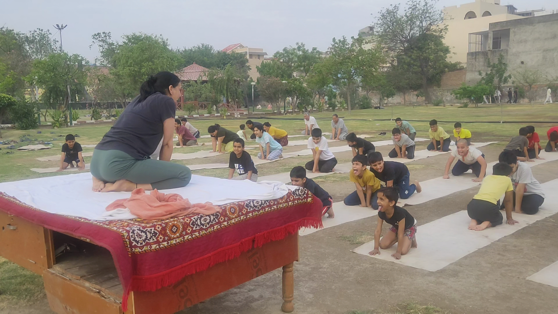 जिला चरखी दादरी के रोज गार्डन में डॉक्टर सुनीता नवीन कासनी के सानिध्य में चल रही योग कक्षा