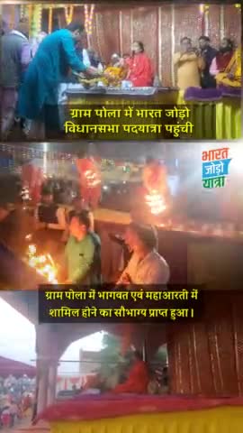 भारत जोड़ो विधानसभा पद यात्रा के दौरान ग्राम पोला में चल रहे श्री सीताराम मानस महायज्ञ में शामिल हुआ। एवं महाआरती करने का सौभाग्य प्राप्त हुआ।