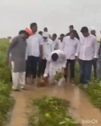 जिल्ह्यात सरसकट ओला दुष्काळ जाहीर करा आ. रवी राणा थेट शेतकऱ्यांच्या बांधावर अमरावती : गेल्या काही दिवसांपासून पावसाने कहर केला आहे. शेतात पाणी साचल्याने पिकांचे मोठ्या प्रमाणात नुकसान झाले आहे. शेतात चहूकडे पाणीच पाणी अशी विदारक स्थिती असल्याच्या पार्श्वभूमीवर शनिवारी आमदार रवी राणा हे अधिकाऱ्यांना घेऊन शेतीच्या बांधावर पोहोचले. बळीराजाची व्यथा जाणून घेताना सरसकट