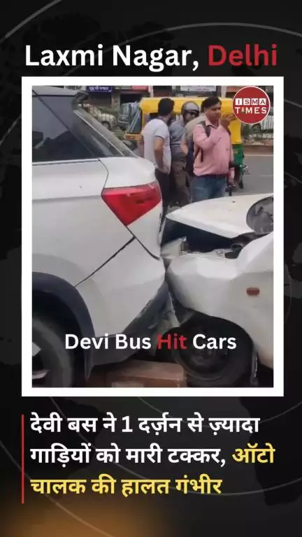 Laxmi Nagar Delhi : देवी बस ने गाड़ियों में मारी टक्कर, ऑटो चालक की हालत गंभीर । #laxminagar #ismatimes