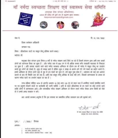 पुनासा: ओंकारेश्वर : घाट पर साबुन एवं शैंपू के प्रयोग को प्रतिबंधित करने हेतु लिखा जिला कलेक्टर को पत्र।