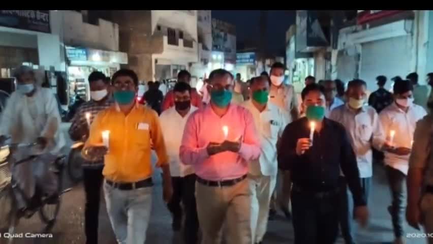 रायसिंहनगर: कोरोना महामारी से आमजन को बचाने के लिए रायसिंहनगर प्रशासन ने शहर भर में निकाला कैंडल मार्च