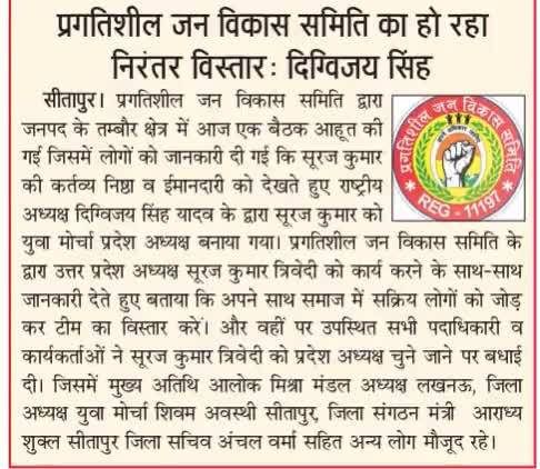 प्रगतिशील जन विकास समिति (PJVS) पदाधिकारियों को हार्दिक बधाई