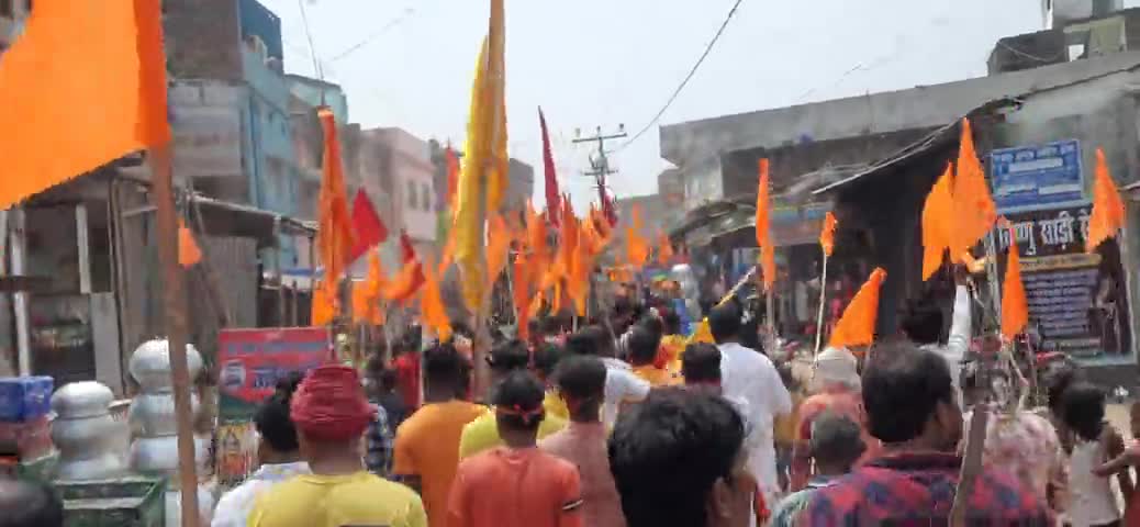 पुरैनी में रामनवमी के शुभ अवशर पर रामभक्तों द्वारा निकाली गई विशाल शोभायात्रा।। गणेशपुर अखाड़ा चौक से पुरैनी बाजार