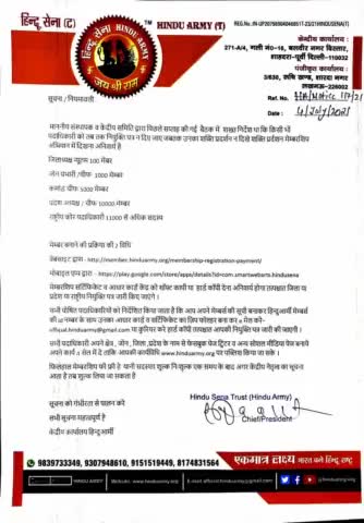 हिन्दू आर्मी के मेम्बर बनने और बनाने के लिए इस लिंक को खोले https://hinduarmy.org/membership/ सदस्यता सर्टिफिकेट पाए ।