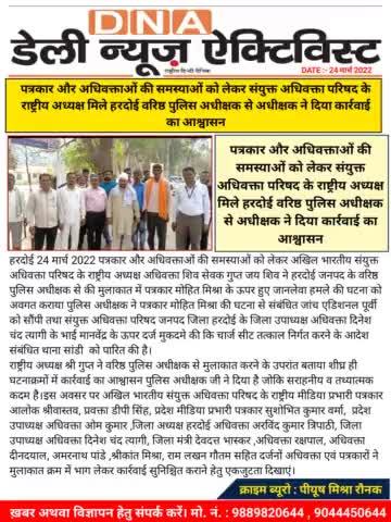 पत्रकार और अधिवक्ताओं की समस्याओं को लेकर संयुक्त अधिवक्ता परिषद के राष्ट्रीय अध्यक्ष मिले हरदोई वरिष्ठ पुलिस अधीक्षक