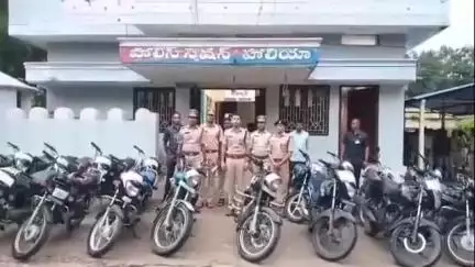నల్గొండ జిల్లా, అనుముల మండలం, హాలియా పోలీస్ స్టేషన్లో శుక్రవారం రాత్రి జిల్లా ఎస్పీ శరత్ చంద్ర పవార్ మీడియా సమావేశాన్ని ఏర్పాటు చేశారు. ఈ సందర్భంగా వారు మాట్లాడుతూ.. హాలియా సర్కిల్, త్రిపురారం పోలీస్ స్టేషన్, పరిధిలో దొంగతనాలకు పాల్పడుతున్న 9మంది అంతర్రాష్ట్ర దొంగల ముఠాను అరెస్టు చేసి వారి వద్ద నుండి 25 బైకులు, రెండు తులాల బంగారం, 5 సెల్ ఫోన్ లను స్వాధీనం చేసుకున్నట్లు తెలిపారు. చోరీ చేసిన బైకుల విలువ 25 లక్షలు ఉంటుందని ఎస్పీ తెలిపారు. ఆధునిక సాంకేతిక పరిజ్ఞానంతో ప్రస్తుతం దొంగలను పట్టుకోవడం సులభమని, దొంగతనాలకు పాల్పడితే కటకటాల పాలు కాక తప్పదని హెచ్చరించారు.