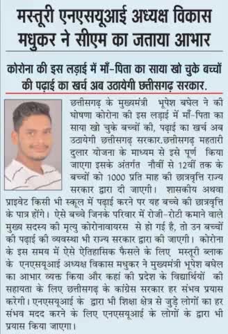 इस ऐतिहासिक फैसले के लिए छत्तीसगढ़ के मुख्यमंत्री जी का सादर आभार #cmochhattisgarh #nsui_