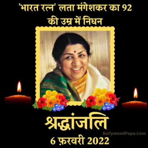 देश की शान, स्वर कोकिला, 'भारत रत्न' लता मंगेशकर जी के निधन का अत्यंत दुःखद समाचार प्राप्त हुआ। ईश्वर पुण्य आत्मा को अपने श्री चरणों में स्थान व परिजनों एवं प्रशंसकों को यह दुःख सहन करने की शक्ति प्रदान करें।