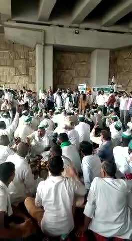 कृषि अध्यादेशों के विरोध में धरना देते किसान