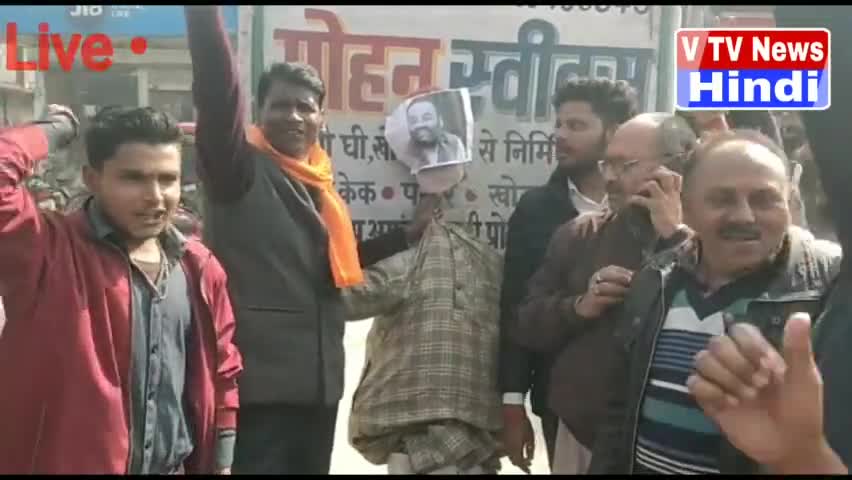 लखीमपुर खीरी: खमरिया पंडित में हिंदू समाज ने फूका स्वामी प्रसाद मौर्य का पुतला