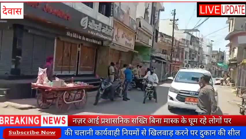 देवास नगर: बिना मास्क वालो पर की चलानी कार्यवाही व नियमों से खिलवाड़ करने पर दुकान की सील