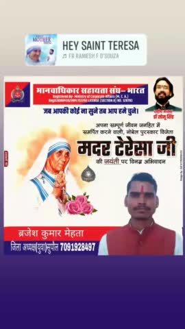 मदर टेरेसा जी की जयंती पर सुपौल जिला वासियों को बहुत बहुत बधाई एवं शुभकामनाएं। जय हिन्द....