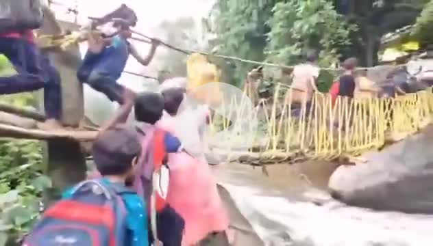 क्या ऐसे ही बनेगा भारत विश्वगुरु⁉️ BJP शासित महाराष्ट्र के नंदुरबार में वारखेड़ी नदी पर पुल न होने के कारण ग्रामीणों ने ख़ुद से बांस और रस्सी की मदद से पुल बनाया।