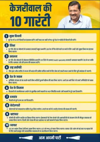देश की जनता के लिए, केजरीवाल की 10 गारंटी 🇮🇳👇