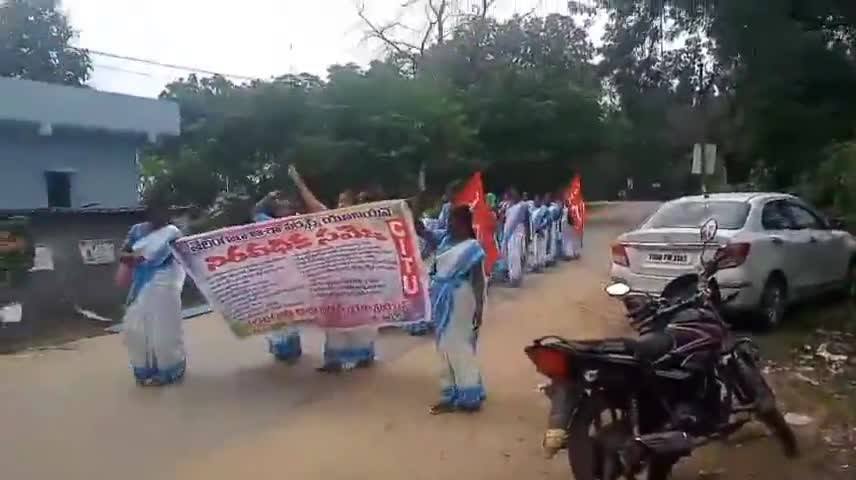 పెంబి: ఆశా వర్కర్ల సమస్యలను పరిష్కరించాలని చేపట్టిన నిరవధిక సమ్మెలో భాగంగ ర్యాలీ నిర్వహించిన మండల ఆశా వర్కర్లు.