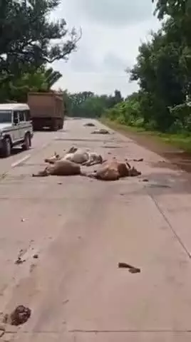 कटनी जिले के बड़वारा क्षेत्र के नायगांव ग्राम के समीप राष्टीय राज्य मार्ग 43 में एक अज्ञात वाहन ने रोड में गौवंश के झुंडो