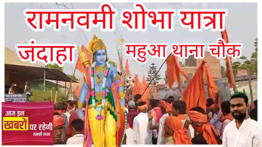 जंदाहा: जंदाहा में रामनवमी के उपलक्ष में निकली शोभायात्रा पारंपरिक हथियार के साथ