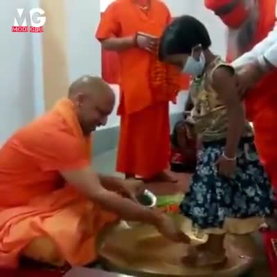 नवरात्रि के शुभ अवसर पर आज विधि-विधान से कन्या-पूजन करते मुख्यमंत्री योगी जी🙏