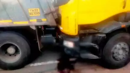 குஜிலியம்பாறை தாலுகா பாளையம் அருகே பாம்பாட்டி களம் என்ற இடத்தில் ஒரு டிப்பர் லாரி சாலை ஓரம் நின்று இருந்தது. அந்த லாரியின் டிரைவர் லாரியின் பின்பக்கமாக நின்று கொண்டிருந்தார். அப்பொழுது சற்று தூரத்தில் நின்று இருந்த டிரைவர் இல்லாத லாரி தானாக ஓடிவந்து நின்றிருந்த லாரியின் பின்பக்கமாக மோதியது. இதில் லாரியின் பின்னால் நின்று இருந்த ஈரோடு மாவட்டம் கோவிந்தபாளையம் கிராமத்தைச் சேர்ந்த சிவானந்தம் வயது 34 என்ற டிரைவர் முகம் நசுங்கி சம்பவ இடத்திலேயே பலியானார். சம்பவம் குறித்து குஜிலியம்பாறை போலீசார் வழக்கு பதிந்து விசாரணை.