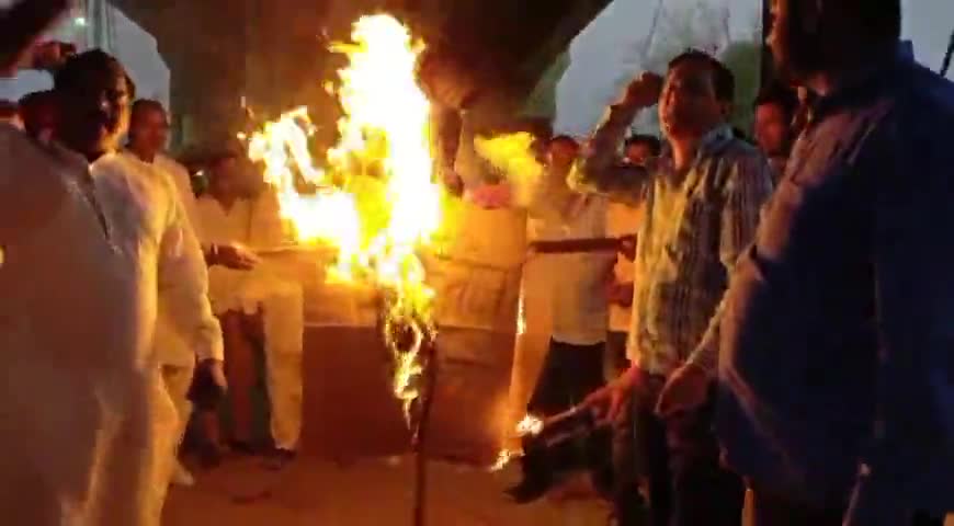 घड़साना: ग्राम पंचायत 2 एसटीआर में ग्रामीणों ने एकत्रित होकर सालासर में तोड़े गए द्वार के विरोध में मुख्यमंत्री का पुतला फूंका