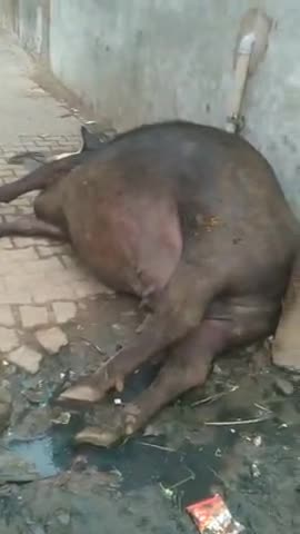 खुर्जा: के मोहल्ला खीर खानी करंट लगने से हुई भैंस की दर्दनाक मौत।