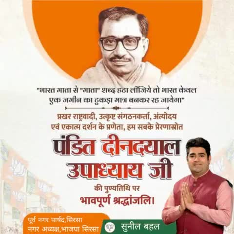 पंडित दीनदयाल उपाध्याय जी की पुण्यतिथि पर भावपूर्ण श्रद्धांजलि।