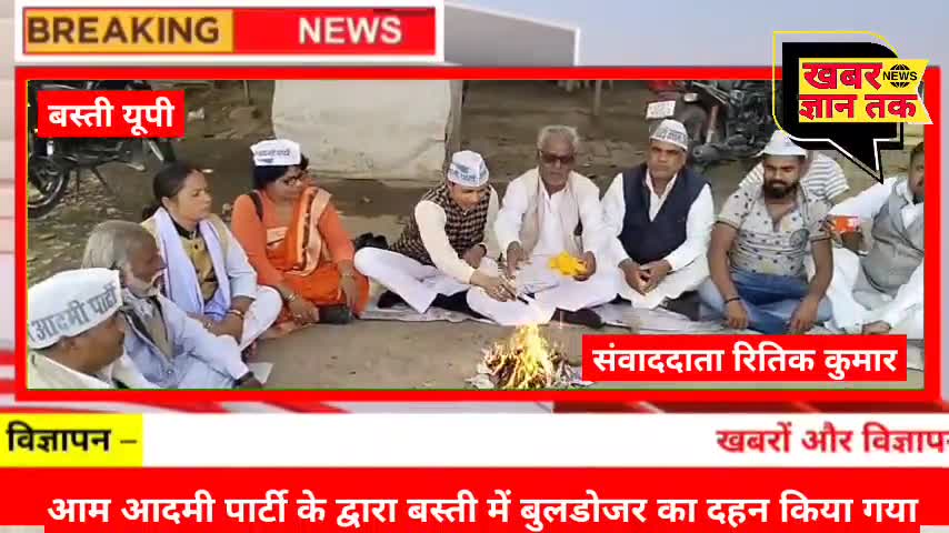 Basti News:आम आदमी पार्टी के द्वारा बस्ती जनपद के शास्त्री चौक पर बुलडोजर का दहन किया गया