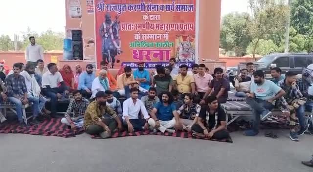 जयपुर: महाराणा प्रताप की प्रतिमा से असामाजिक तत्व द्वारा मूर्ति तोड़फोड़ के विरोध महिपाल सिंह और भूपेंद्र शेखावत का धरना जारी