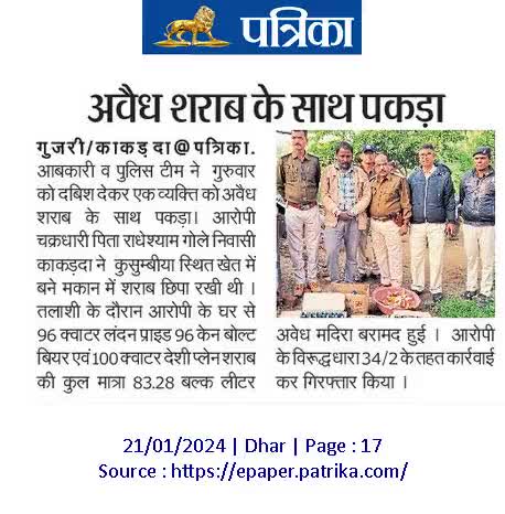 महेश्वर... आबकारी दल ने दबिश देकर अवेध शराब के साथ युवक को किया गिरफ्तार