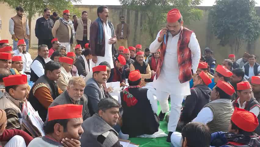 ओरैया में समाजवादी पार्टी के धरना प्रदर्शन को सम्बोधित करते हुए पूर्व मंत्री विधायक विनोद यादव कक्का