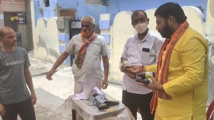 गांव हरतोली में आयुष काढ़ा और गिलोय वितरण करते हुए....