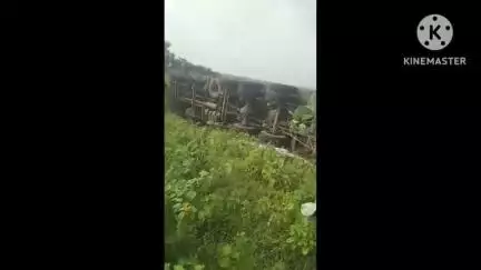 अनियंत्रित ट्रक पलटा विकासखंड धनौरा के निकटतम ग्राम पिपरिया भसुडा लगभग 2 किलोमीटर दूरी पर धनोरा पलारी मार्ग ।