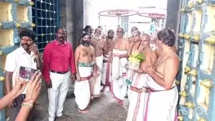 சோளிங்கர்: சோளிங்கர் லஷ்மி நரசிம்மர் திருக்கோயிலில் ஆந்திர மாநில அஹோபில மடத்தின் 46 வது ஜீயர் சாமி தரிசனம் மேற்கொண்டார்
