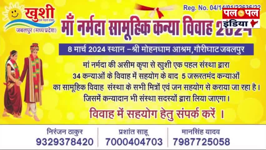 मां नर्मदा सामुहिक कन्या विवाह।। खुशी एक पहल संस्था प्रशांत साहू समाजसेवी