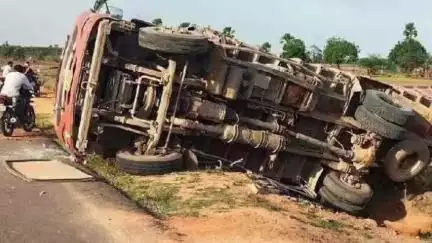 గరిడేపల్లి మండలం కల్మల్ చెరువు శివారు వద్ద సోమవారం ఉదయం సిమెంట్ లారీ బోల్తా పడింది.జాన్పహాడ్ నుంచి గరిడేపల్లి వైపు వస్తున్న అదానీ సిమెంట్ లోడ్ లారీ, రోడ్డు వెడల్పు పనుల్లో తీస్తున్న గుంతలోకి దూసుకుపోయి అదుపు తప్పిందని స్థానికుడు అంజినాయక్ తెలిపారు. ప్రమాద సమయంలో వెంటనే స్పందించి డ్రైవర్ను కాపాడినట్లు చెప్పారు. ఈ ఘటనలో ఎలాంటి ప్రాణ నష్టం జరగకపోవడంతో ఊపిరి పీల్చుకున్నారు.