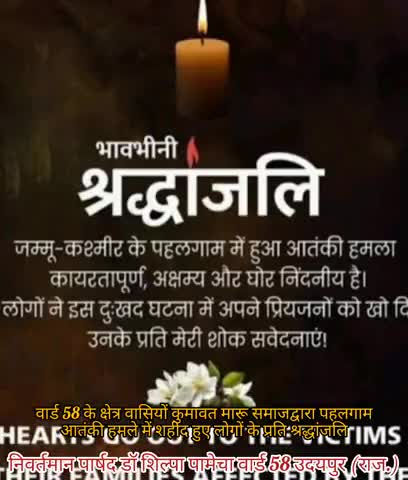 वार्ड 58 के क्षेत्र वासियों कुमावत मारू समाज द्वारा पहलगाम आतंकी हमले में शहीद हुए लोगों के प्रति श्रद्धांजलि