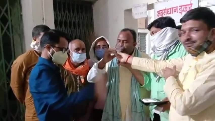 आरा: डीएम के आश्वासन के बाद टाउन थाना परिसर में सदर एसडीओ ने जूस पिलाकर तुड़वाया जाप नेताओं का अनशन