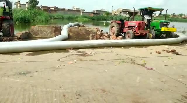 रावतसर : कस्बे में जलभराव के बाद पानी निकालने में लगा स्थानीय प्रशासन।