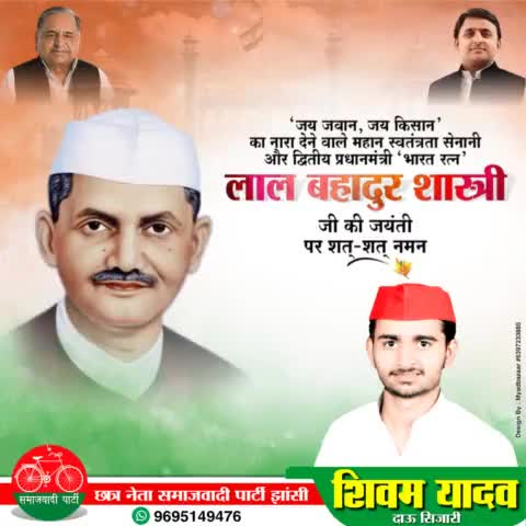 ‘जय जवान-जय किसान’ के उद्घोषक पूर्व प्रधानमंत्री श्री लाल बहादुर शास्त्री जी की जयंती पर उन्हें शत् शत् नमन।