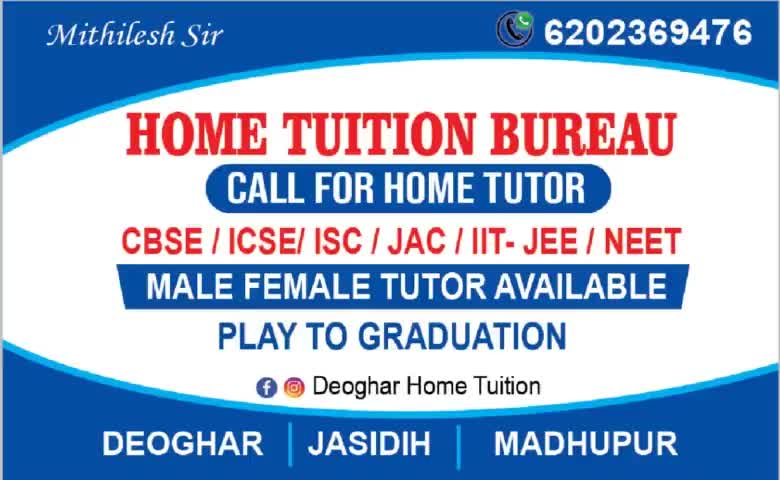 Home tuition Bureau... tuition teacher kay leya Contact karay mob:- 6202369476