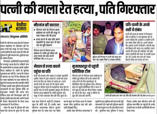 पत्नी की गला रेत कर की हत्या पति गिरफ्तार जांच में जुटी फॉरेंसिक टीम