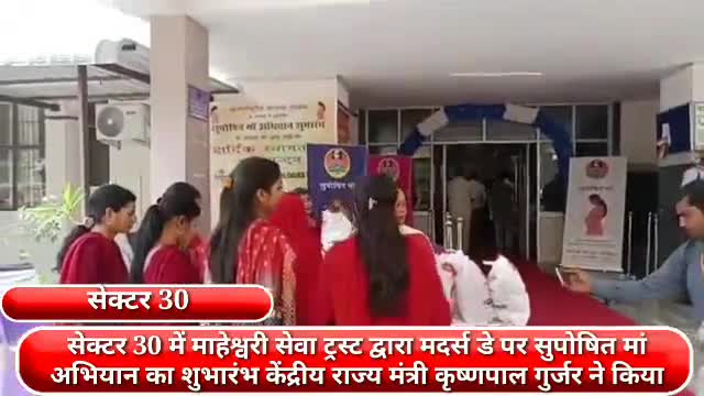 फरीदाबाद: सेक्टर 30 में माहेश्वरी सेवा ट्रस्ट के मदर्स डे पर सुपोषित मां अभियान का शुभारंभ केंद्रीय राज्य मंत्री कृष्णपाल ने किया