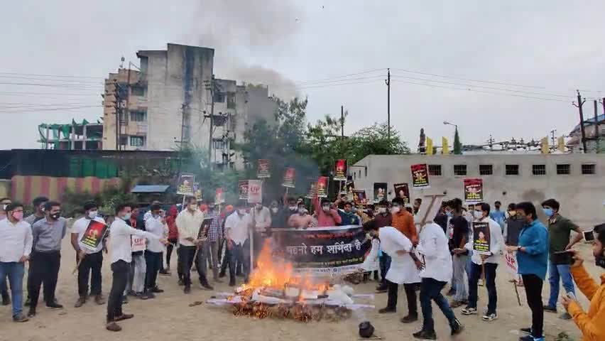 उत्तर प्रदेश में हुए दुष्कर्म के खिलाफ छत्तीसगढ़ एनएसयूआई ने पूरे रीति रिवाज से योगी अपराधनाथ/भाजपा सरकार की चिता जलाई।