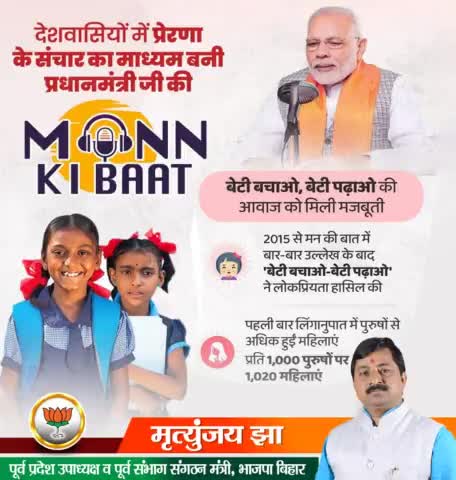 माननीय #नरेंद्रमोदीजी की एक अपील देशवासियों के लिए बनी मुहिम !! माननीय #प्रधानमंत्री श्री Narendra Modi जी ने #MannKiBaat कार्यक्रम में 'बेटी बचाओ-बेटी पढ़ाओ' अभियान का बार बार उल्लेख किया, जिसके परिणाम स्वरूप