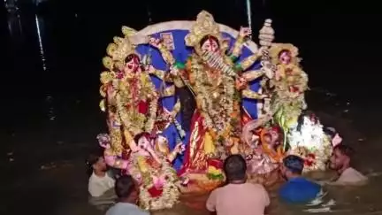 দুর্গোৎসবের পর্দা নামল প্রতিমা নিরঞ্জনের মধ্য দিয়ে। বৃহস্পতিবার রাত আটটা নাগাদ অনুষ্ঠিত হয় তপন রাধাগোবিন্দ সেবাশ্রম সংঘের প্রতিমা বিসর্জনের কর্মসূচি। সেবাশ্রম সংঘের পার্শ্ববর্তী পুকুরে ভক্তি ও আবেগের আবহে দেবী দুর্গার প্রতিমা বিসর্জন করা হয়। শঙ্খধ্বনি, উলুধ্বনি ও ঢাকের তালে তালে ভক্তরা মায়ের বিদায় জানিয়ে জানান তাঁদের কৃতজ্ঞতা ও শ্রদ্ধা। প্রতিমা নিরঞ্জনের সময় উপস্থিত ছিলেন সংঘের সদস্য, স্থানীয় বাসিন্দা ও বহু ভক্তবৃন্দ। সকলের মুখে ছিল আগামী বছর মায়ে