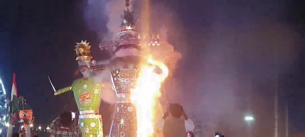 दिल्ली। लव कुश रामलीला कमेटी द्वारा आयोजित लाल क़िला ग्राउंड में किया गया रावण दहन