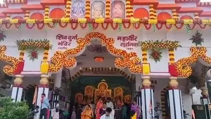 सूरजगढ़ा नगर परिषद के शिव दुर्गा महावीर मंदिर में इस बार 29 वें वर्ष मां दुर्गा की प्रतिमा स्थापित कर पूजा अर्चना की जा रही है. बुधवार की अपराह्न 1:30 बजे नवरात्रि की नवमी तिथि को मंदिर परिसर में हवन कार्य किया जा रहा था.यहां वर्ष 1997 से माता की प्रतिमा स्थापित हो रही है.मंदिर परिसर में फूलों की आकर्षक सजावट की गई है. यहां भव्य दशहरा मेला आयोजन होता है.