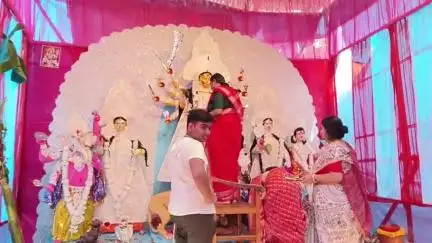 আজ শুভ দশমী, বৃহস্পতিবার বেলা বারোটা থেকে মাথাভাঙ্গার বিভিন্ন পুজো মণ্ডপ গুলিতে মা দুর্গাকে বরণ করা হয় এবং সিঁদুর দেওয়া হয় এছাড়া বিভিন্ন পূজো মণ্ডপ গুলিতে শিখ মা দুর্গাকে সিঁদুর দেওয়ার জন্য ব্যাপক ভিড় ছিল চোখে পড়ার মতন। সেই সঙ্গে মা দুর্গাকে বিদায় জানানো হয়। দশমী পূজা অর্চনা শেষ পর হওয়ার পরেই মহিলাদের বিভিন্ন মন্ডপে তাদের সিঁদুরদান এবং সিঁদুর খেলায় মাতোয়ারা হন। সব মিলিয়ে জমজমাট এই সিঁদুর খেলা।