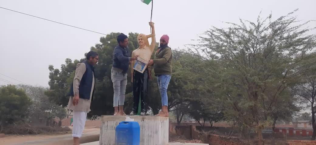 बहल में शहीद भगतसिंह की प्रतिमा को आज गंगा जल से व हवन यज्ञ से शुद्धिकरण किया गया।